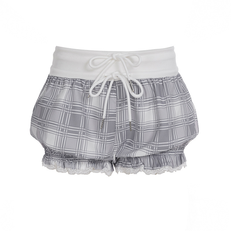 2025 Women's Ins Hot Girls Lotus Edge Girls Summer High-Waist Small Hot Babes Draw Rope Thin Flower Tidly Shorts Tide HZ0107