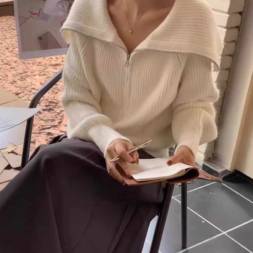 Sweater Women's Coat Cardigan Winter New Korean Big Collar Zipper Solid Color Lazy Soft Loose Loose Version Of Knitted Shirt HZ0108